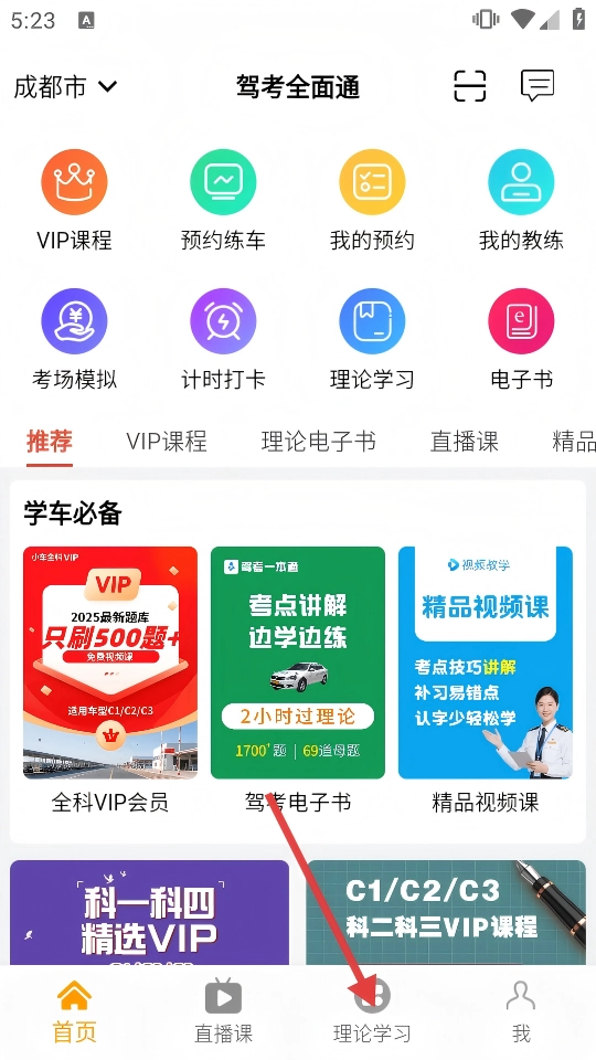 1、进入首页后,点击切换到【理论学习】,进入学习页。