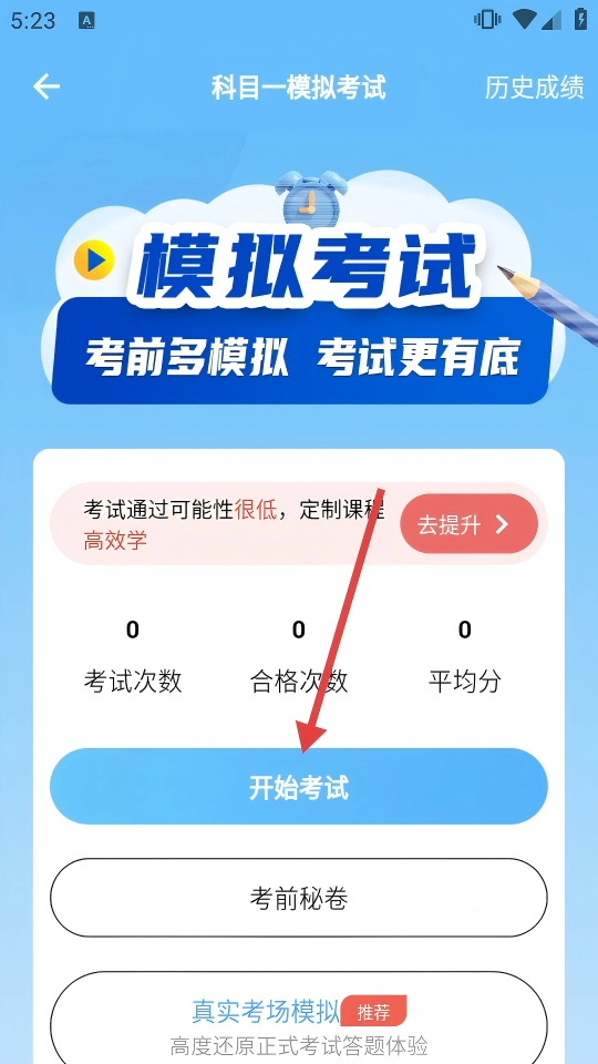 3、接着在模拟考试页面,点击页面中的【开始考试】按钮。