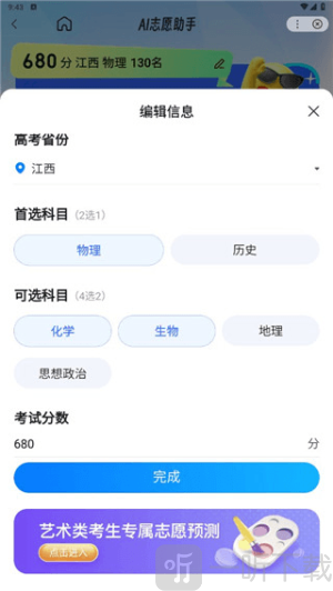 2. 依次输入所在的的省份、批次、科目、分数等信息即可;