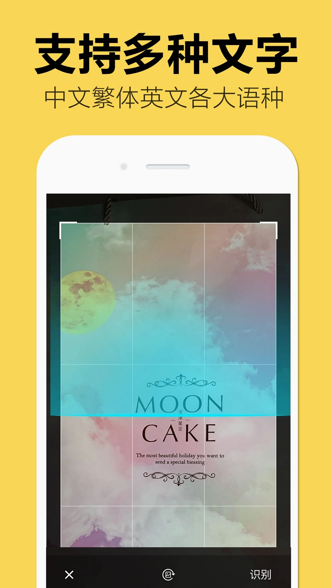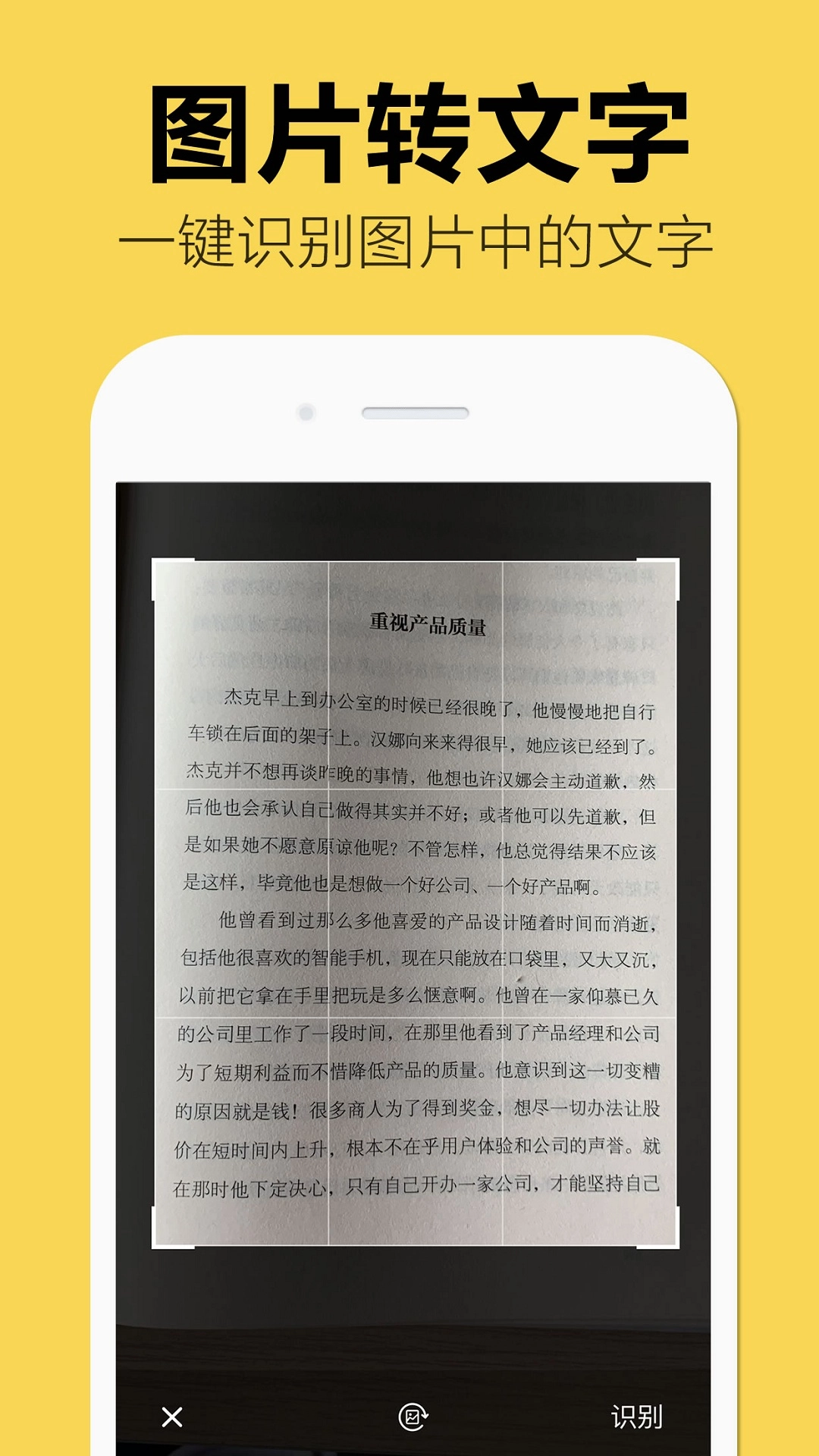 3.点击“识别”按钮后,App就会启动对所选区域文字的识别工作。在识别进行期间,请务必保持手机平稳,这样才能防止对识别结果造成不良影响。