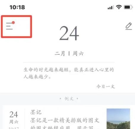 1.在墨记找到左上角的三横线图标,点击进入