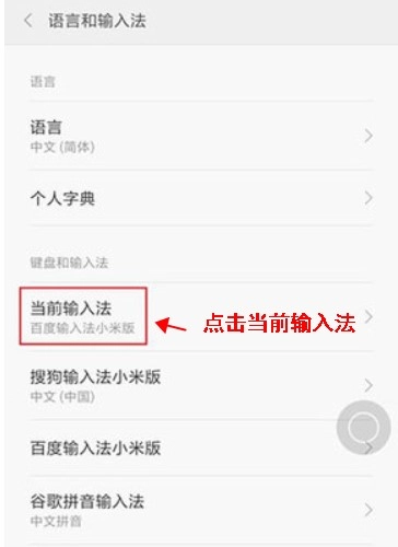 4、接下来可以进入默认输入法的设置界面,找到并点击页面里的“设置”选项,把输入法切换成搜狗输入法小米版。
