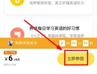 在芝士派英语平台,若想添加课程,需前往课程界面完成购买操作。找到目标课程后点击“立即参团”按钮进行购买,成功支付后该课程便会添加到你的课程列表中。