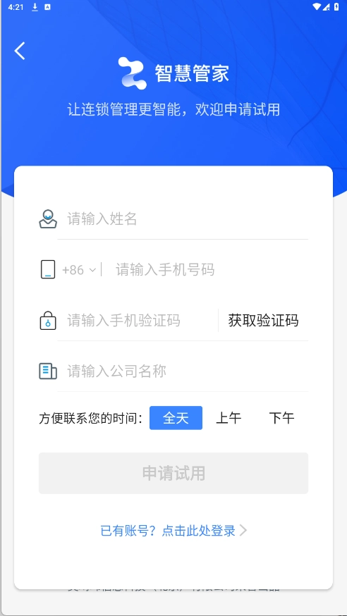 4、选择“申请试用”选项,填写相关信息,选定方便联系的时间,点击“申请试用”按钮即可完成操作。