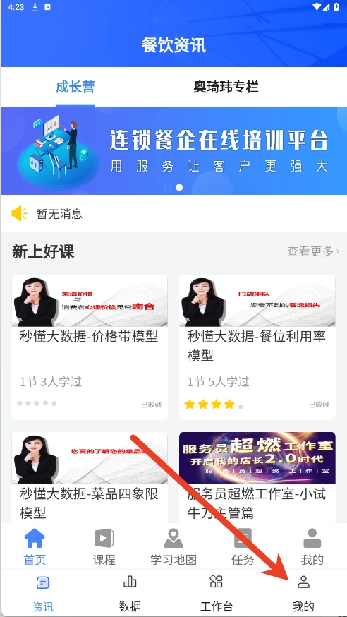 1、打开餐行健智慧管家主页,点击右下角的【我的】