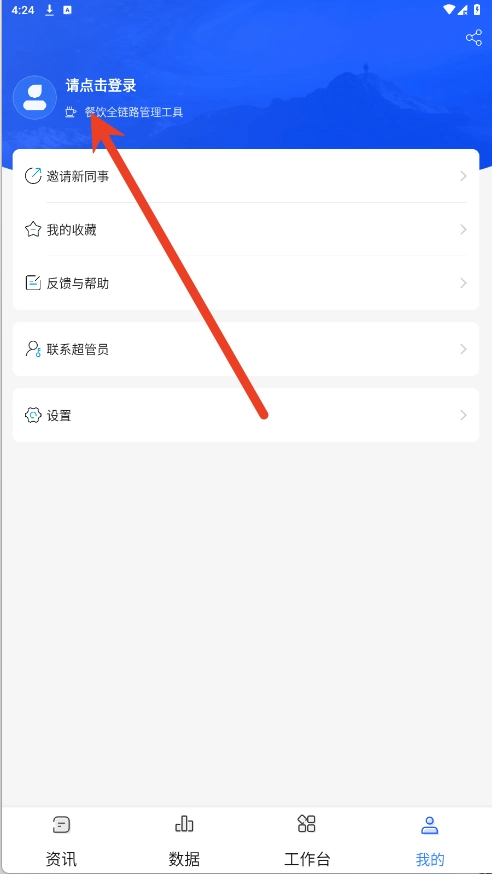 2、软件提供资讯、数据、工作台和我的界面