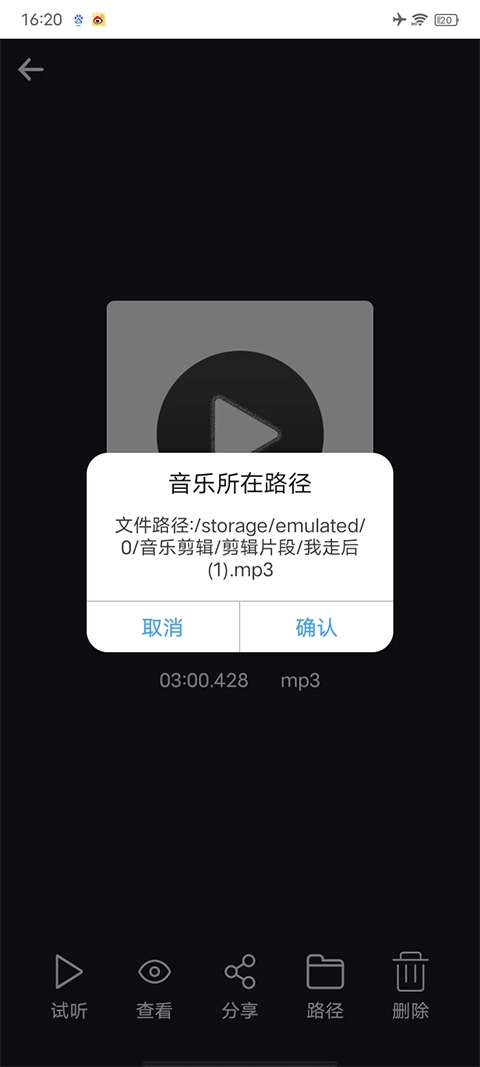 4、此时会弹出该音乐对应的路径,依据这个路径就能找到刚刚导出的音频文件。