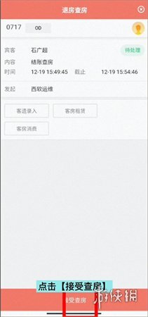 2、若客人仍在住宿期间,收到查房通知后,请点击“现在查看”。