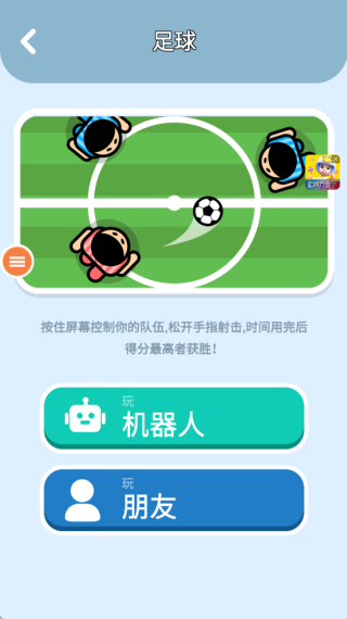 2.如下图所示,小编选择了足球,进入之后可以选择和机器人对决,也能够选择和朋友玩耍。