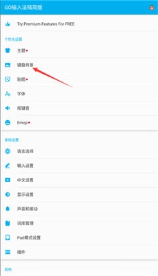 1、把软件安装好并打开后,进入输入法的设置界面,找到键盘背景相关的选项。
