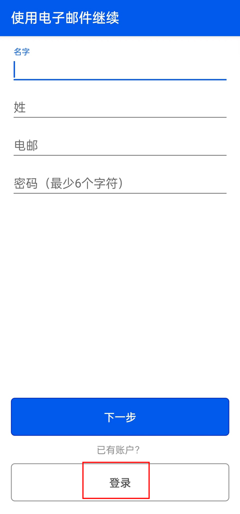 2、这边我们选择的是电子邮件登录,就在下方选择登录;