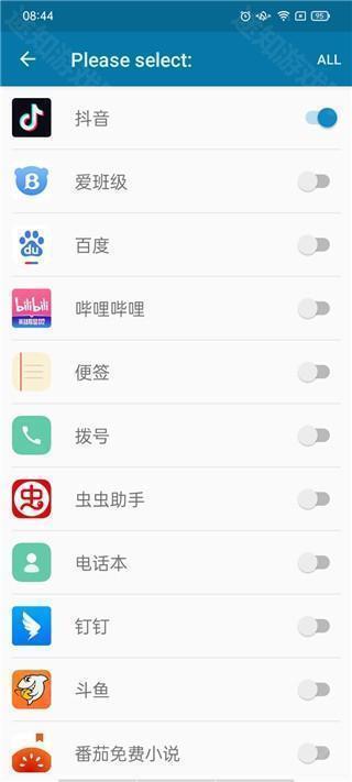 1、先把dynamic Spot安装完成,接着打开并进入该软件。 2、进入软件后,点击“Select”选项来挑选想要添加到灵动岛上的应用,若需一键全选,点击右上角的“ALL”即可。