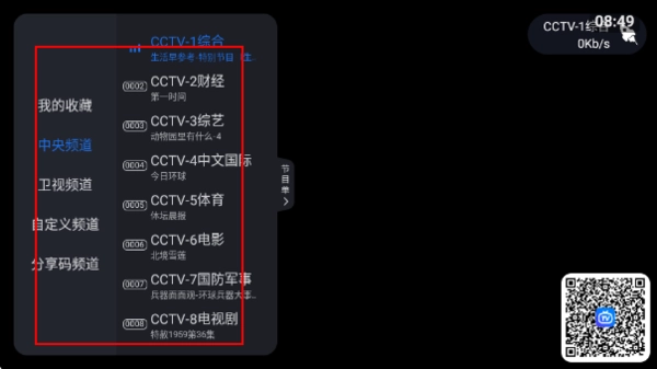 1.进入软件后打开左侧菜单能够发现有很多频道。