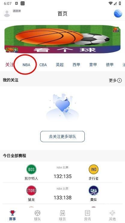 2.喜欢NBA的用户,可以点击NBA;