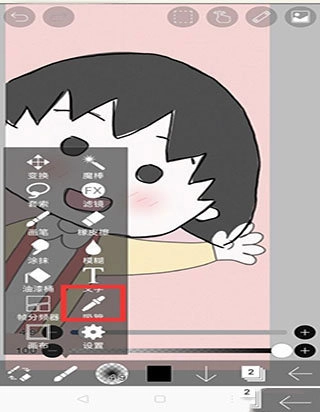 5、然后就是上色,在工具处选择吸管,对着原来有颜色的地方吸色。