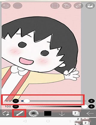 4、接着用画笔,这里选的是软蘸笔4.9粗细,将小丸子的轮廓描出来。