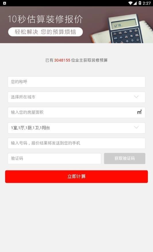 3.装修报价的版块,输入详情信息,为您预估价格