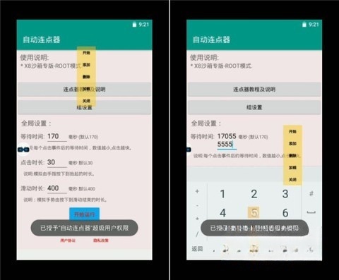 操作流程如下:首先启动自动连点器应用,接着点击界面上的“开始运行”按钮,此时会弹出ROOT权限申请提示,需完成权限授予;之后在控制栏找到“添加”选项并点击,可添加基础的点击操作(若需滑动等其他操作,再次点击“添加”即可);随后对操作的位置参数进行设置;最后点击控制栏中的“开始”按钮,就能启动预设的自动操作流程。
