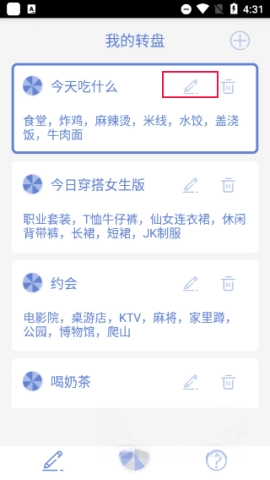 2、考虑到预设模板存在一定限制,你完全可以自行进行自定义设置。拿“今天吃什么”这个例子来说,只需点击编辑按钮,然后输入具体的美食选项,就能完成自定义操作。