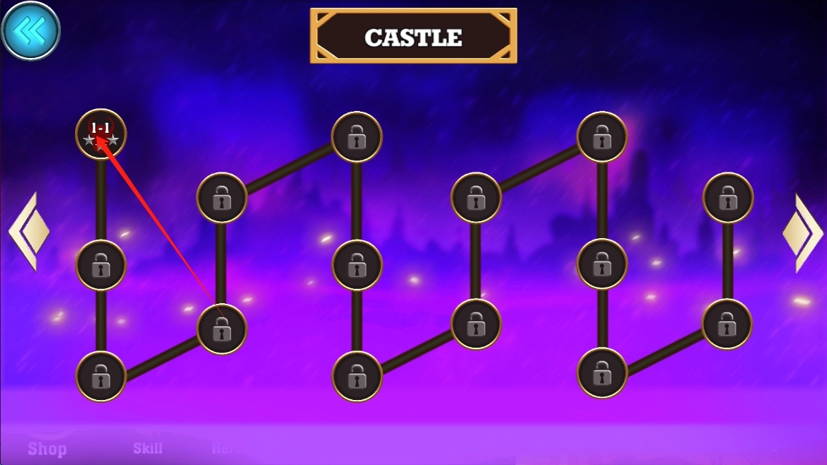 2、选择关卡,可能用于解锁特殊皮肤,利用每日登录奖励获取免费角色试用与加速解锁。