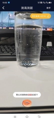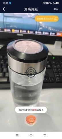3、将镜头对准需要测量的对象的底部,缓缓移动手机,按下确认键。