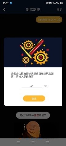 2、输入手持手机者的身高。这一步十分关键,要是处于坐着的状态,输入60厘米应该是可行的。