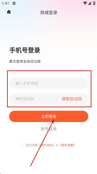 3、在登录页面填写手机号和验证码,勾选协议后,点击登录完成账号登录操作。