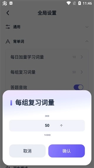 4、点击下面的每组复习词量选项;