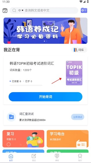 1.精选不同的词库,点击一个个韩语单词,开启学习