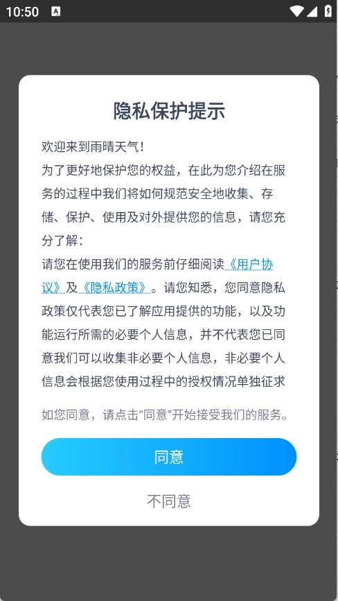 1、用户首先需在本站雨晴天气平台,查看并同意隐私政策及用户协议。