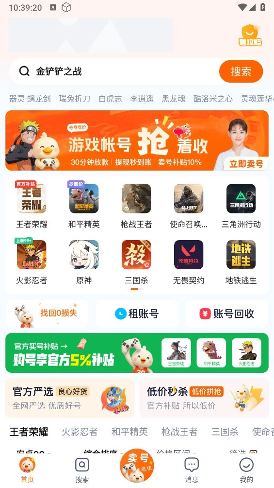 账号玩是一个专注于自由账号交易的平台,这里汇聚了各类优质游戏账号,用户可以在此进行租号、账号交易等操作。平台涵盖众多经典大作游戏,支持实时交易,能为交易双方提供安全保障,欢迎大家前来体验。