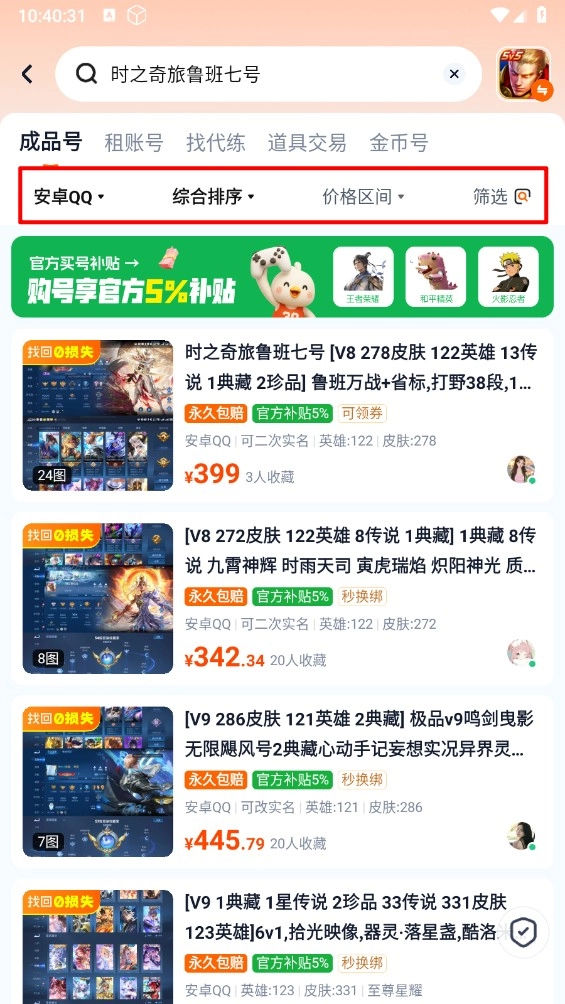 3、如果部分商品账号的价格比市场价格低很多,建议谨慎购买,这很可能是卖家用来骗钱的常见手段。