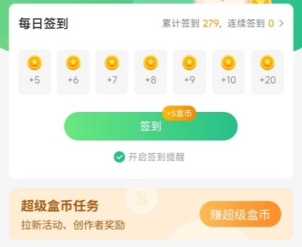 每天进行签到操作,就能获取不同数额的盒币作为奖励;要是能连续签到更长的天数,那么得到的盒币数量也会相应增加。