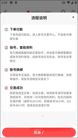 5、在购买前,可以查看系统提供的流程说明,让你更了解交易过程。