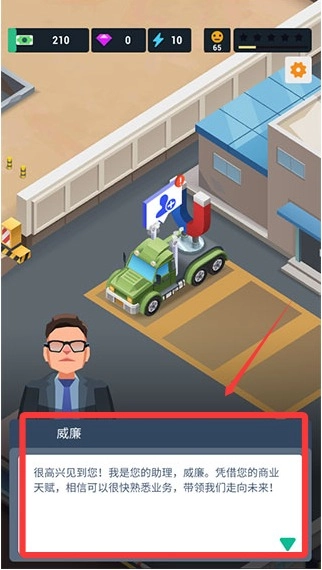 1、进入游戏后,首先通过助理的详细介绍了解工厂。
