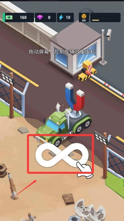 2、然后开始拖动屏幕,控制汽车收集废料赚取资金。
