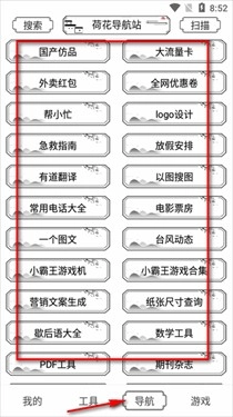 6、点击导航按钮后,就能看到这里集成了不少实用的网页工具。