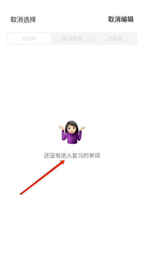 5、当显示“还没有进入复习的单词”时,说明数据已清除完毕,此时可以重新开始背单词了。