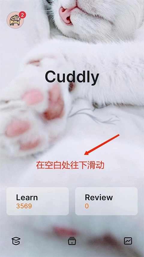 1、第一步,我们打开不背单词应用,进入到主界面后,在界面的空白区域向下滑动。