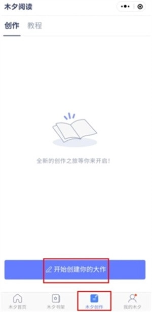 2、进入木夕创作页面中,点击开始创建你的大作按钮;