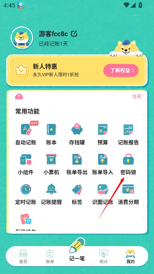 2、接着在个人页面中点击“密码锁”
