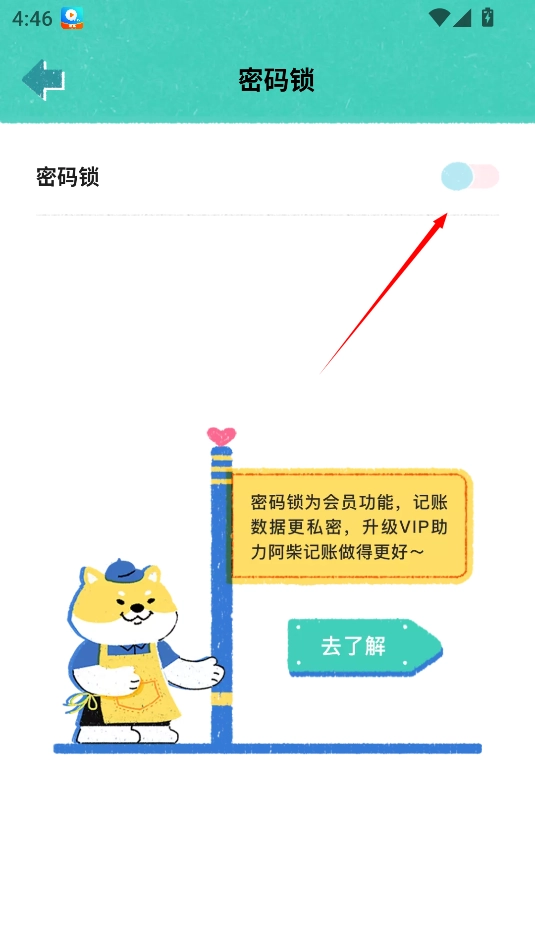 3、接着在打开的页面里,点击图中所示的按钮,就能启用密码锁了。