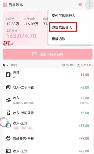 3、在导入账单图片之前,请先进行以下操作:【截图导入设置】--【自动提示】,完成设置后系统会自动选择刚刚截取的微信账单图片进行识别。