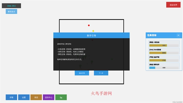 2、玩家能够通过吞噬体型小于自身的生物,将对方的DNA纳为己用,以此达成自身的进化。