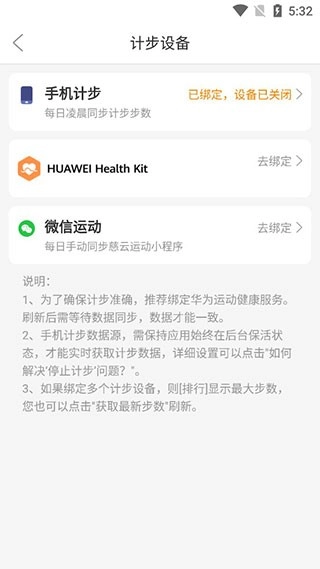 2、根据自己的实际情况选择相对应的设备,例如手机记步。