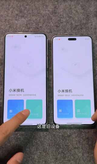 1、新旧手机都需安装小米换机应用,且确保两台设备处于同一WiFi环境中;接着,新手机选择“新”选项,旧手机选择“旧”选项。