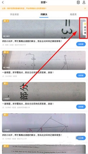 2、进入“作业互助”界面后,在屏幕右侧就能找到“排行榜”的副标。