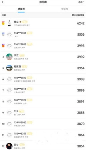 3、点击“排行榜”即可查看排行榜上的各项数据了