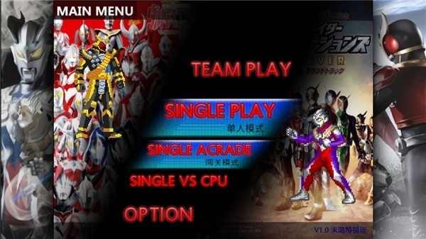 1、角色是奥特曼和假面骑士,点击play