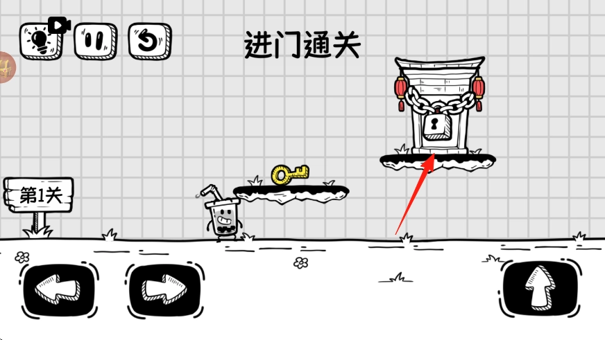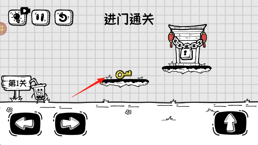 1、操控角色,用左右按钮移动至钥匙处,靠近自动拾取,为开门备关键道具。